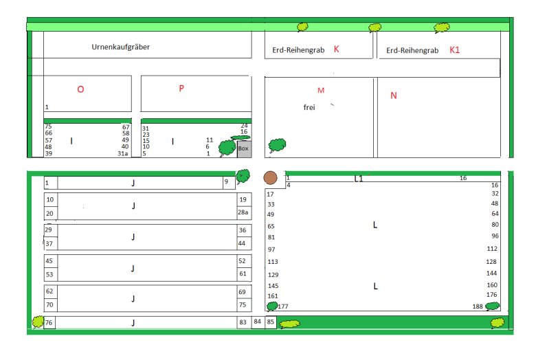 Nutzungsberechtigte, die Grabsteine und Grabeinfassungen in ihren Besitz übernehmen wollen, werden gebeten, bis spätestens 31.07.2026 diese Gräber selbst zu räumen.