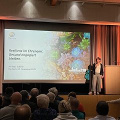 Für inhaltliche Tiefe sorgte die Trainerin und Change-Managerin Annette Schäfer aus Kronberg. In ihrem inspirierenden Impuls-Vortrag zum Thema „Achtsamkeit im Ehrenamt“ gab sie den Gästen wertvolle Denkanstöße mit auf den Weg. Anhand praktischer Beispiele zeigte sie auf, wie es gelingen kann, für andere da zu sein, ohne das eigene Wohlbefinden aus den Augen zu verlieren. Besonders authentisch wirkte ihr Vortrag, da Schäfer selbst ehrenamtlich auf der Kronberger Burg aktiv ist und die Perspektive der Engagierten aus eigener Erfahrung kennt.