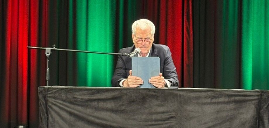 Zu Beginn ließ es sich Bürgermeister Steffen Maar nicht nehmen, den bekannten Schauspieler und Autor persönlich in Rosbach willkommen zu heißen.