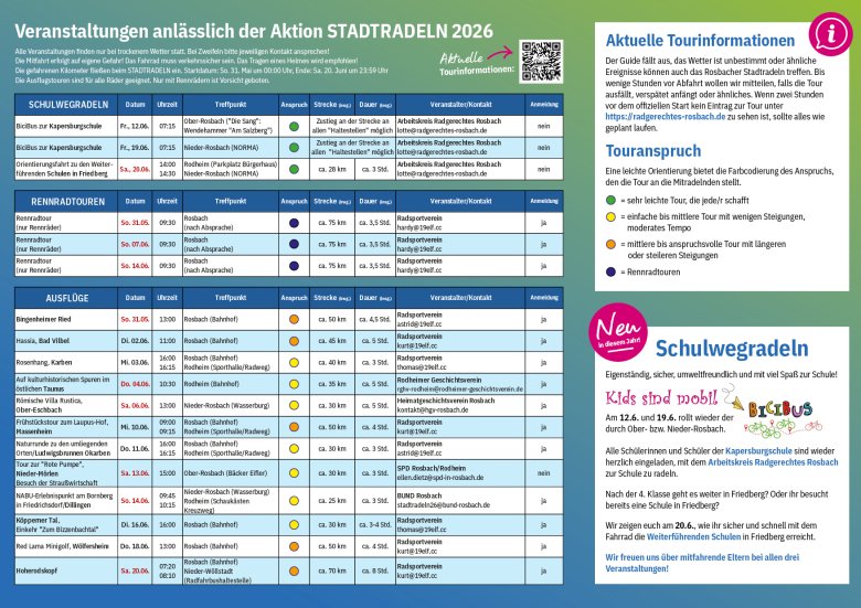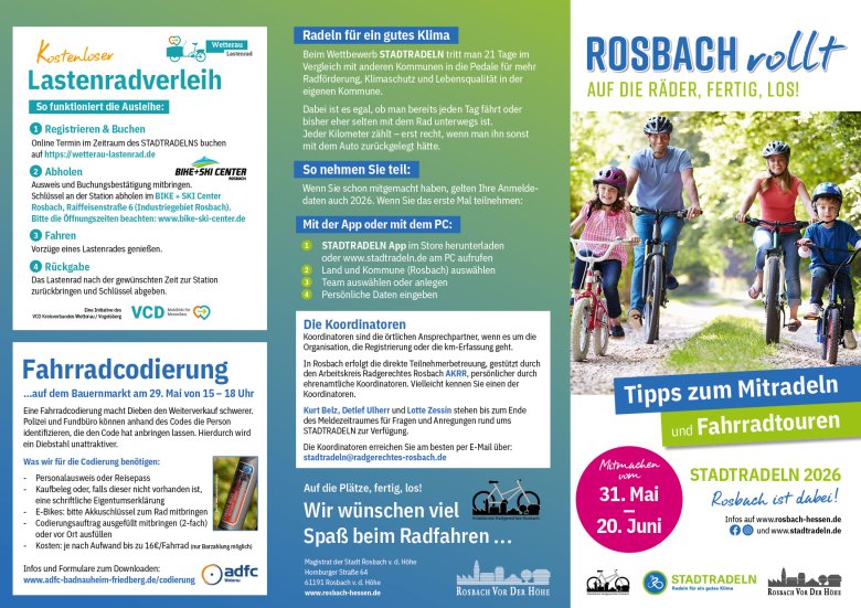 Insgesamt erwartet alle Radbegeisterten wieder ein abwechslungsreiches Programm mit vielen Gelegenheiten, Rosbach und die Umgebung auf zwei Rädern neu zu entdecken.