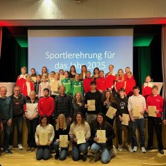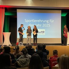 Für zusätzliche Unterhaltung sorgten zwei Vorführungen, die jeweils mit großem Applaus bedacht wurden – Auftritte im Rope Skipping, welche von Trainerin Michaela Kowalski unterstützend moderiert wurden, sowie die akrobatische, schwungvolle Darbietung des „Doppelten Jottchens“ mit Julia Jochum und Julia Kirchler. Begleitende Bilder auf der Leinwand gaben zudem während der Ehrung schöne Einblicke in die Vielfalt der ausgezeichneten Sportarten.
