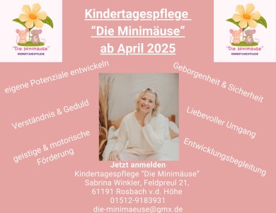 Die Vermittlung von Tagesmüttern/-vätern für Rosbach übernimmt das Kindertagespflegebüro des Diakonischen Werkes Wetterau in Friedberg bzw. Bad Vilbel.