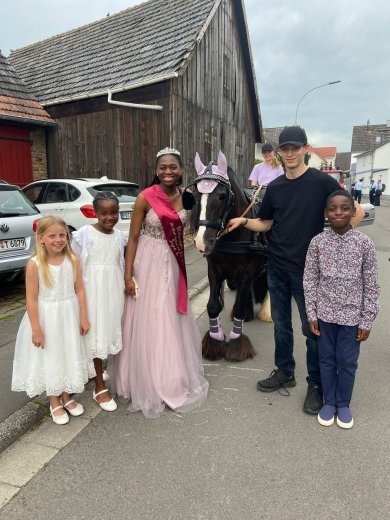 Ihre Inthronisation zur Blütenkönigin fand am Sonntag um 14 Uhr statt, begleitet von ihren Blütenkindern Hannah Ziegeler, Kayla Kommogne und Claude Zali Mouliom. Unterstützt wird sie als erste Blütenkönigin von einer ehrenamtlichen Koordinatorin: Chiara Reidelbach, ehemalige Königin von 2018 und Standesbeamtin. Sie bringt ihre Erfahrung ein, um Joyce in ihrer neuen Rolle zu begleiten – etwa bei der Auswahl geeigneter Termine und Veranstaltungen.