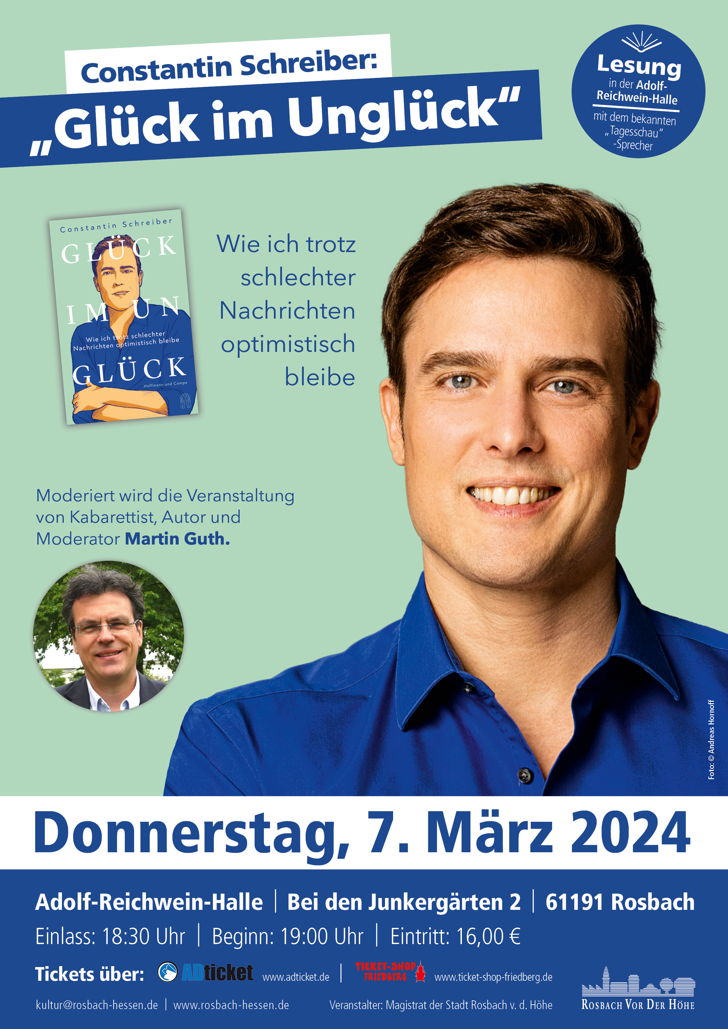Eintrittskarten für alle kostenpflichtigen Veranstaltungen sind unter www.adticket.de, im Ticketshop Friedberg sowie an allen ADticket-Vorverkaufsstellen und an der Abendkasse (nach Verfügbarkeit) erhältlich. Abendkasse zuzüglich 2,-€ Servicegebühr, Buchungen über www.adticket.de zuzüglich Servicegebühr. Es besteht bei allen Veranstaltungen freie Platzwahl.